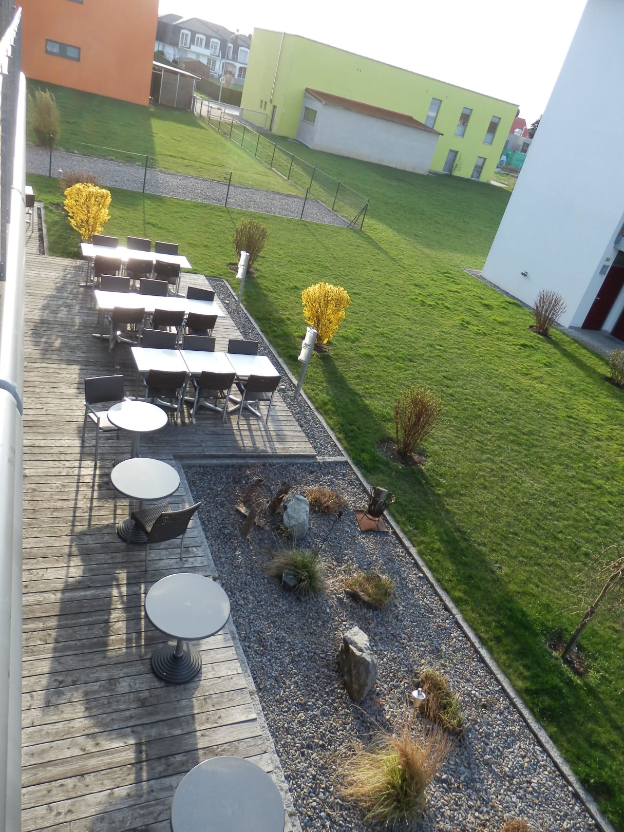 Blick vom Balkon auf den Garten