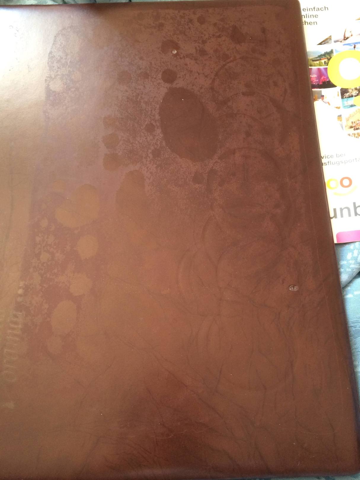 Speisekarte mit unzähligen Flecken
