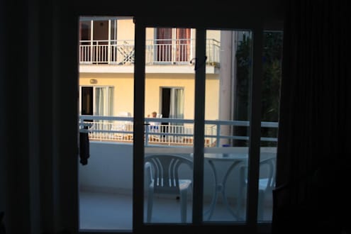 Wenn man nicht seitlich sondern geradeaus schaut, sieht es dann eben so aus. Das Zimmer mit seitlichem Meerblick aber direktem Einblick!