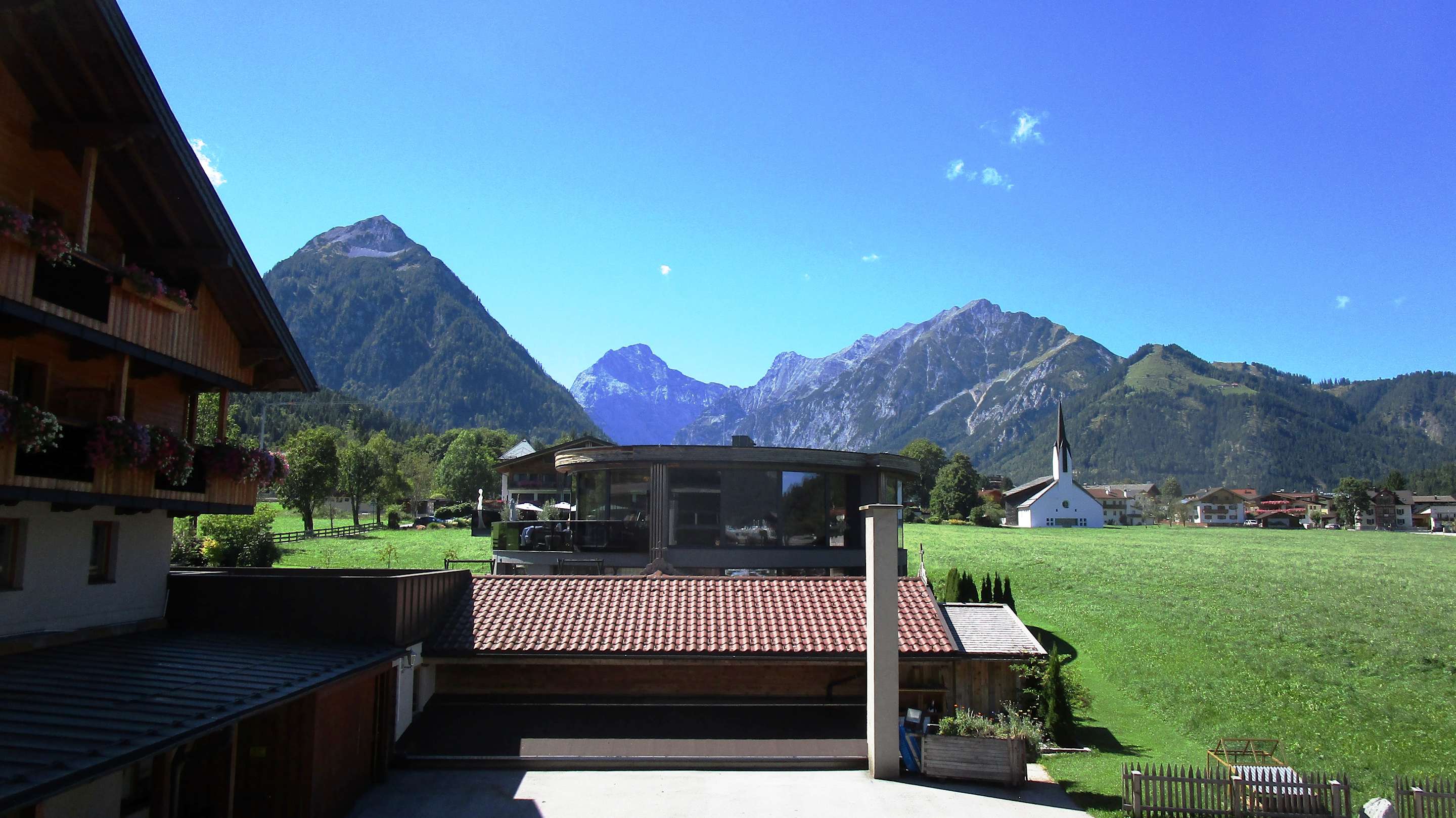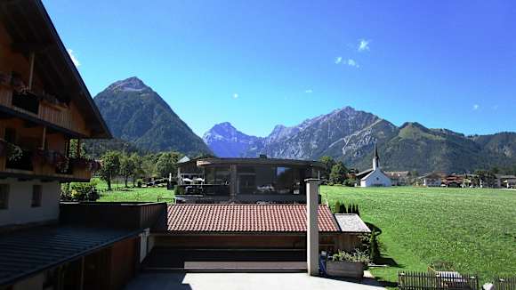 Aussicht vom Balkon auf das Karwendelgebirge