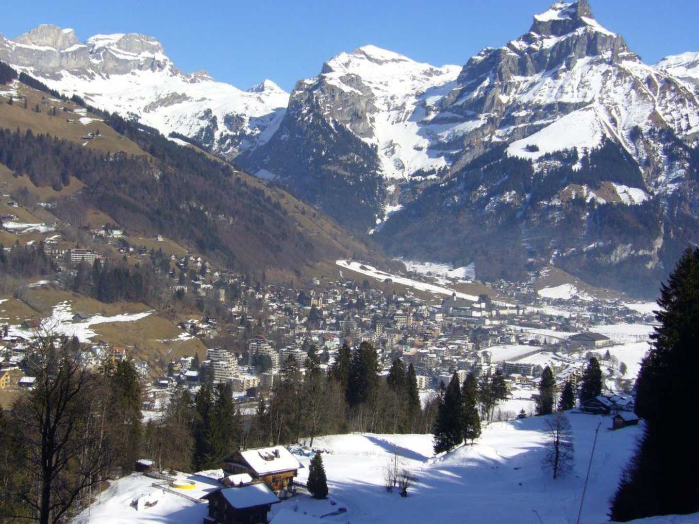 Blick auf Engelberg von Talabfahrt