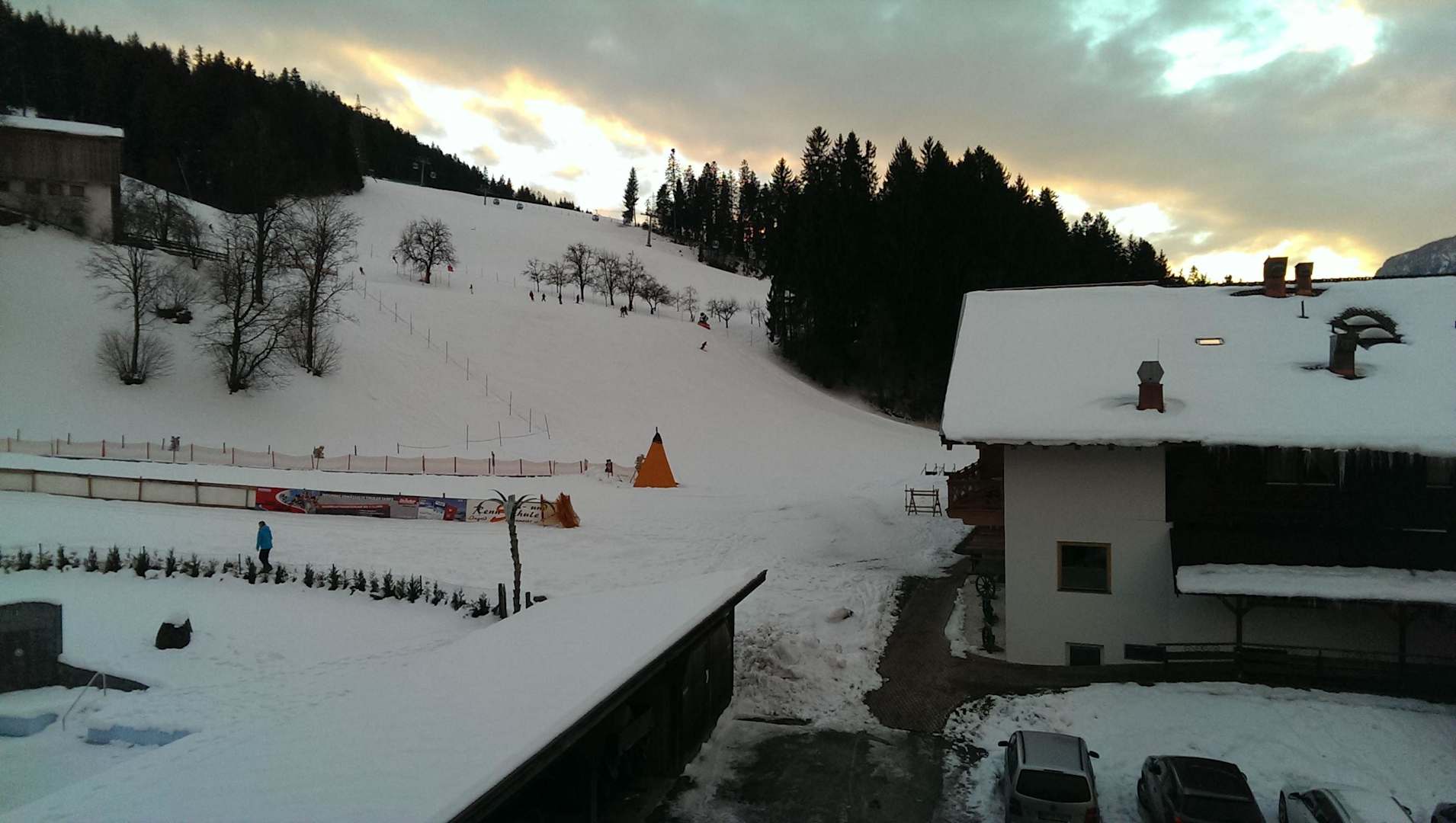 Blick vom Balkon auf die Piste