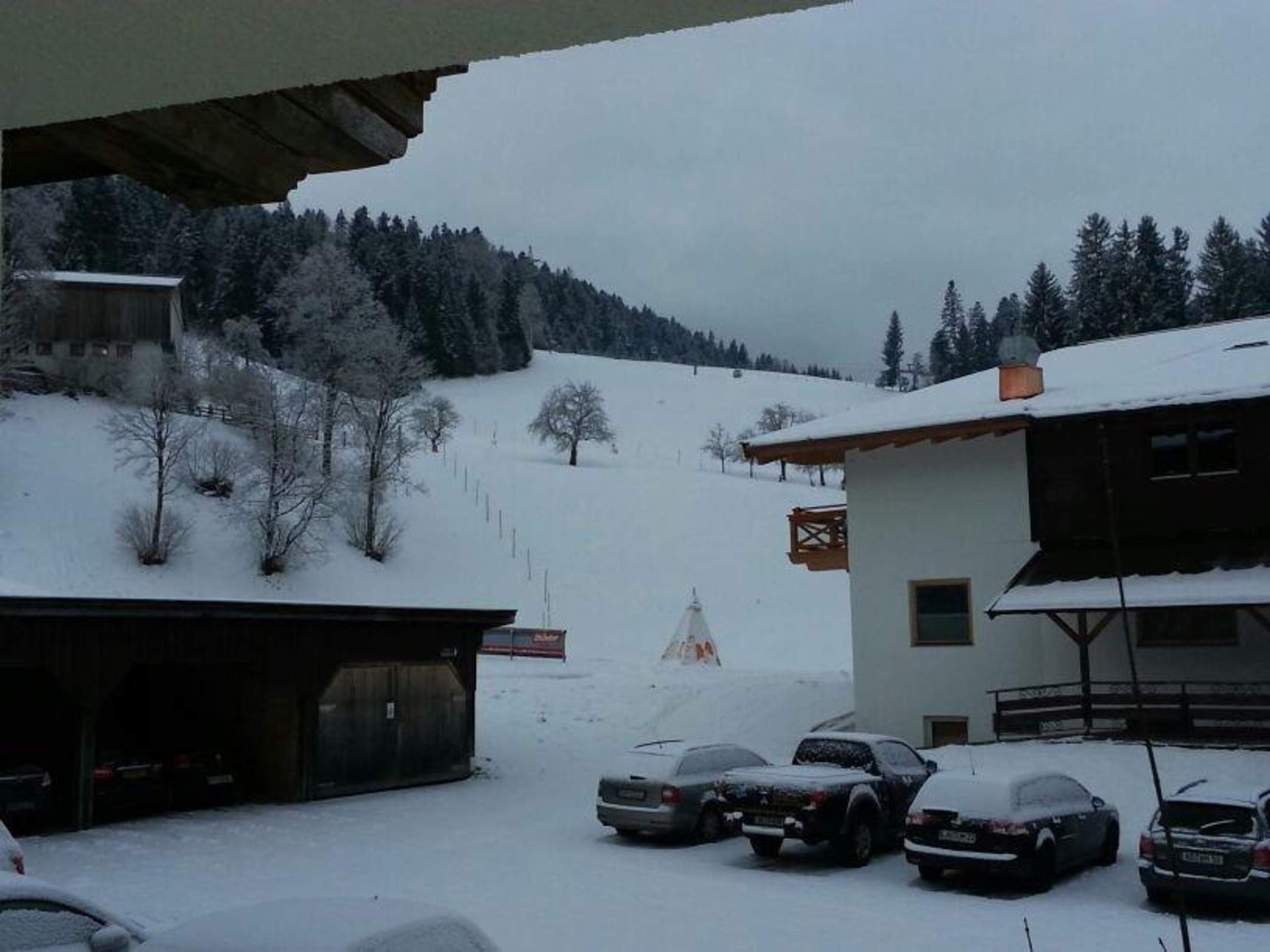 Aussicht vom Hotelparkplatz zur Piste