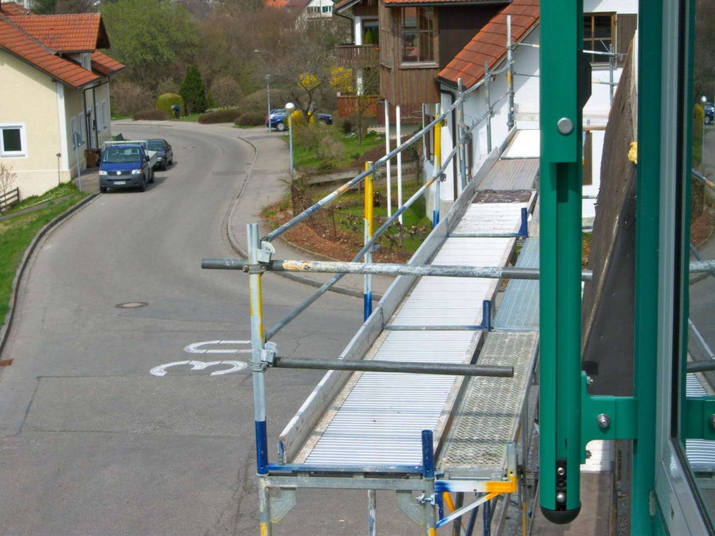 nach rechts ... auf das Baugerüst, das ums ganze Hotel ging ...