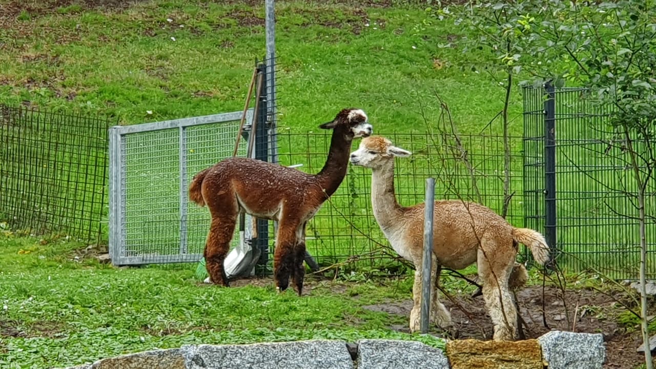 Zwei der drei Alpakas im Tiergehege (August 2021)