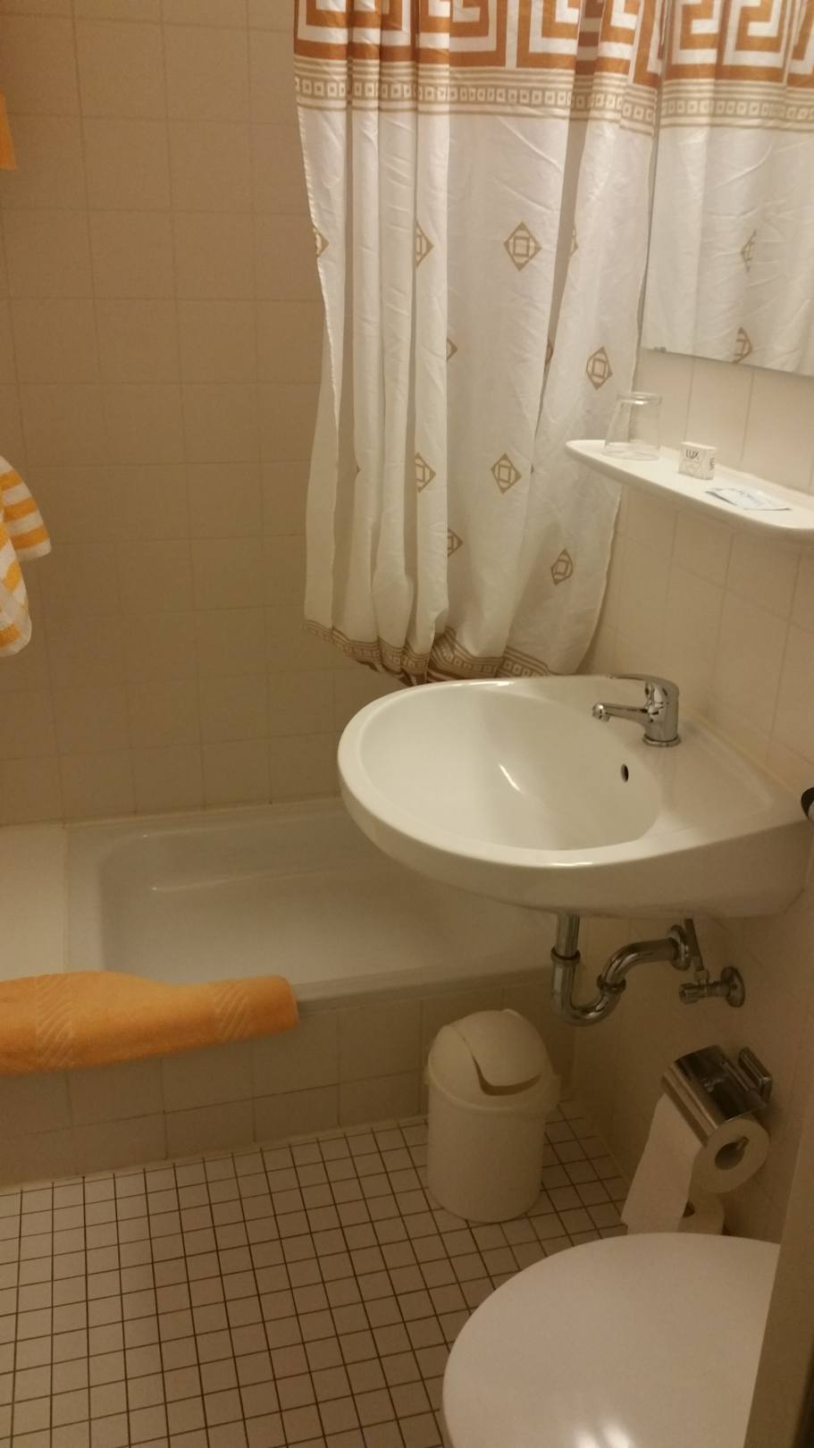 Badezimmer nur für Schlanke Personen. Bad gerade mal so breit wie die Dusche. Toilette gleich an der tür. Toilettenpapierrolle unter dem Waschbecken!!