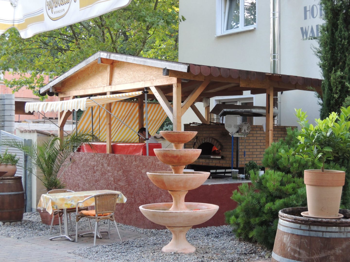 Biergarten mit Holzofengrill