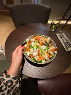 Salatschale mit sehr feinen Crevetten.