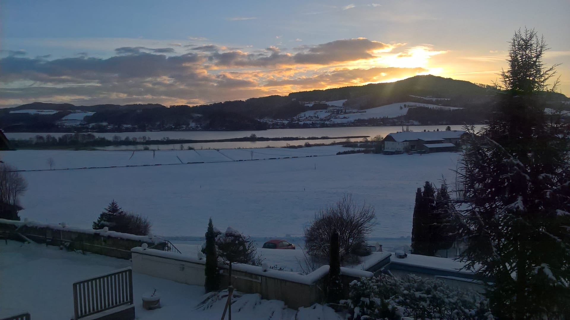 Zonsopgang in de winter. Schitterend!