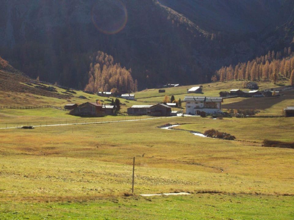 Walserhuus Sertig vom Dorf aufgenommen