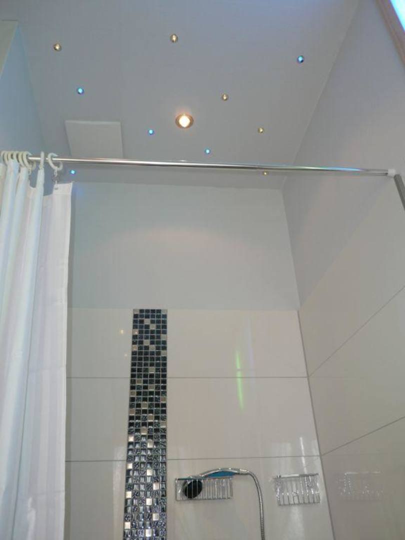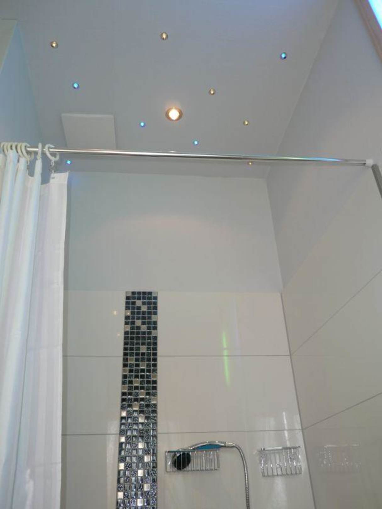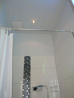 die Decke in der Dusche ist mit LEDs kunstvoll illuminiert