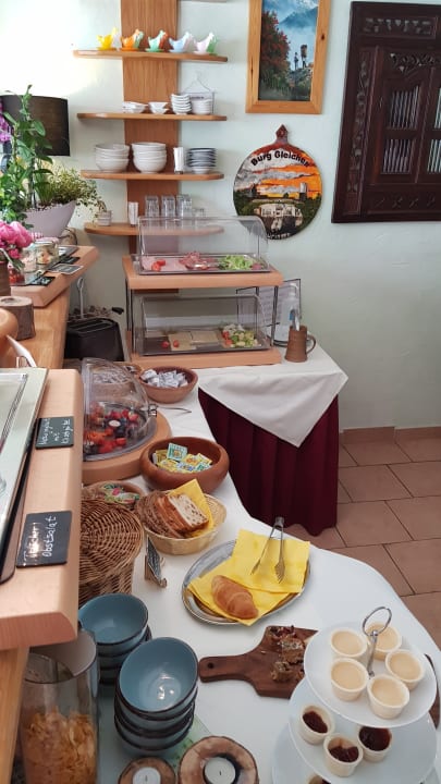 GastroBlick auf das Frühstück, insgesamt mit allem, was man haben kann, sehr umfangreich und gesund.