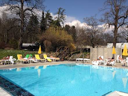 30 Grad Thermalbecken im Freien bei 25 Grad im Apr
