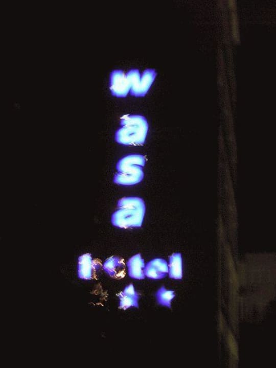 Die Leuchtreklame an der FassadeDas ist die Leuchtreklame des Wasa Hotels bei Nacht. Leider ist das Bild etwas unscharf.