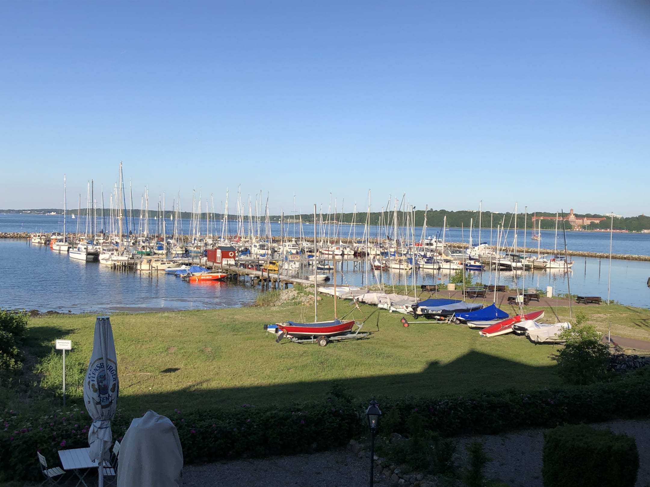 Blick vom Balkon des Zimmers 102 auf den Segelhafen