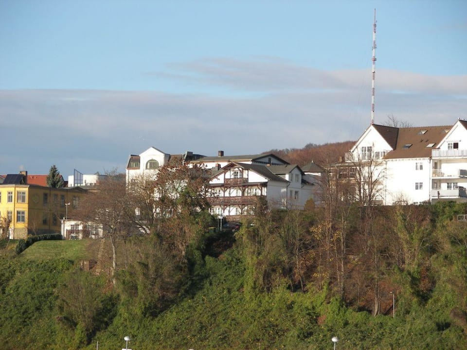 Hotelansicht von der Mole ausSchnappschuss vom Hotel beim Spaziergang von der Mole aus. Es ist das Haus in der Mitte mit den Holzbalkonen.