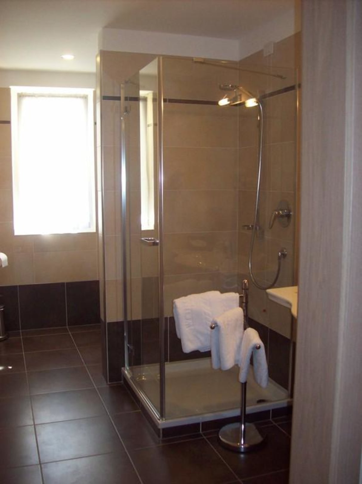 modernes, sauberes Badezimmer der Suite.