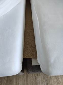 ZimmerStatt Gitterrost liegt man auf einer Spanplatte - bei einem Übernachtungspreis über 110 Euro die Nacht ein NO-GO!
