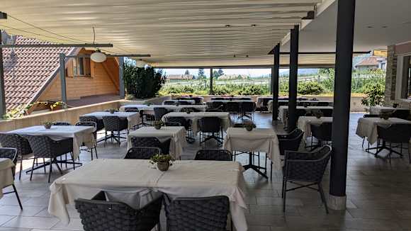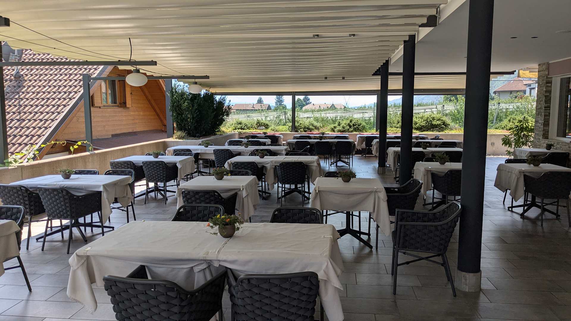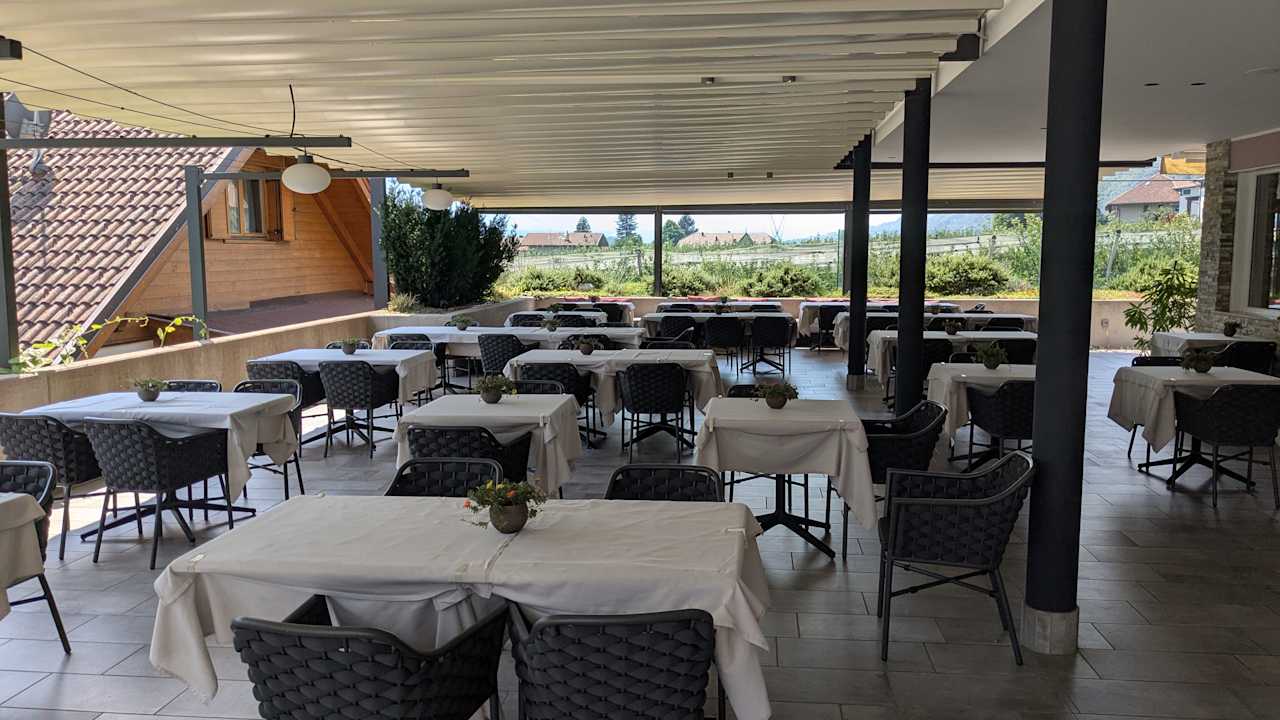 Hier gab es bei Frühstück und Abendessen bei schönem Wetter.