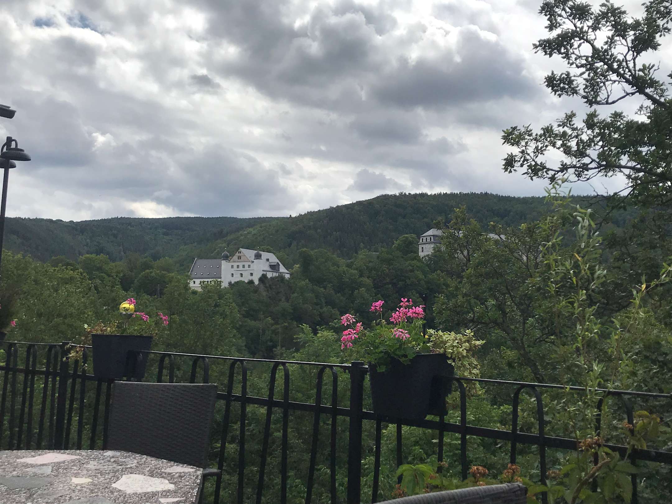 Ausblick von der Terrasse auf das Schloss