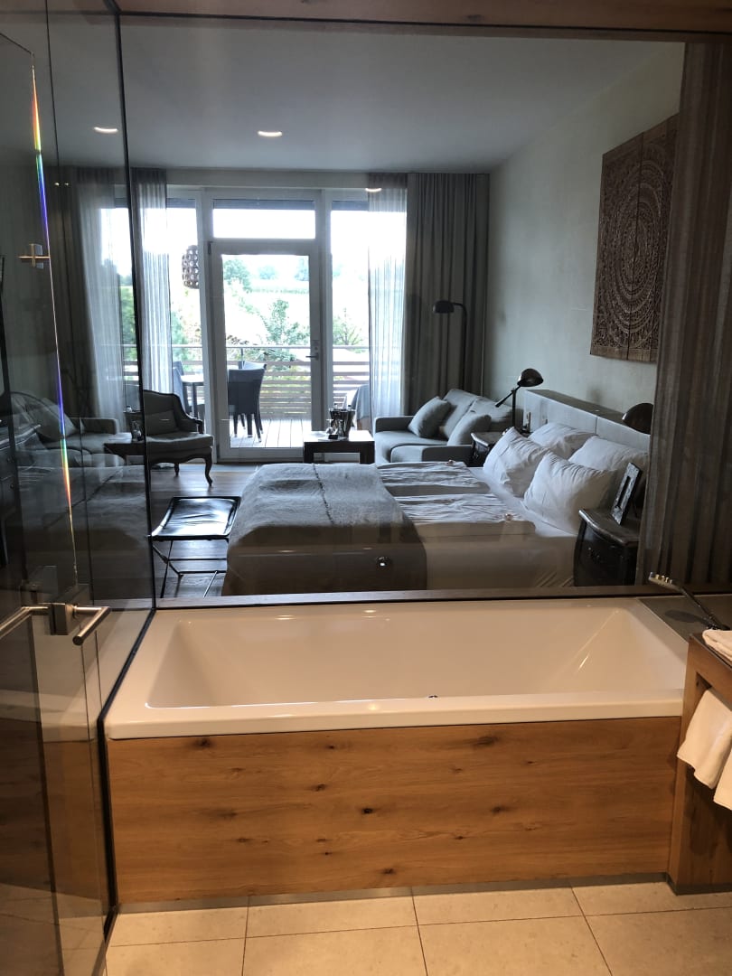 Abtrennung vom Bad zum Zimmer mit Glasscheiben