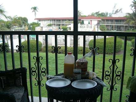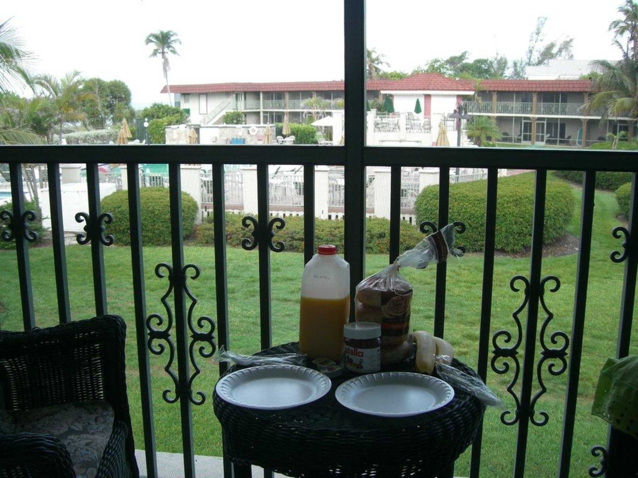 Blick vom Zimmer auf die Poolanlage