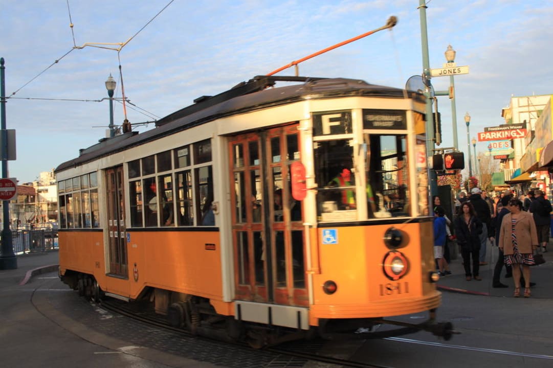 Historische Linie F, hält vorm Hotel