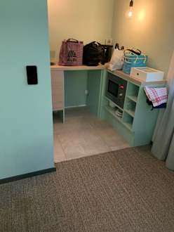 ZimmerKüche ohne Kühlschrank und es fehlte auch sonst an allem, wie Besteck, Pfanne, Töpfe etc...