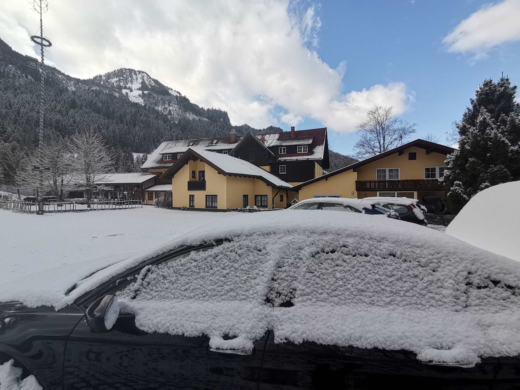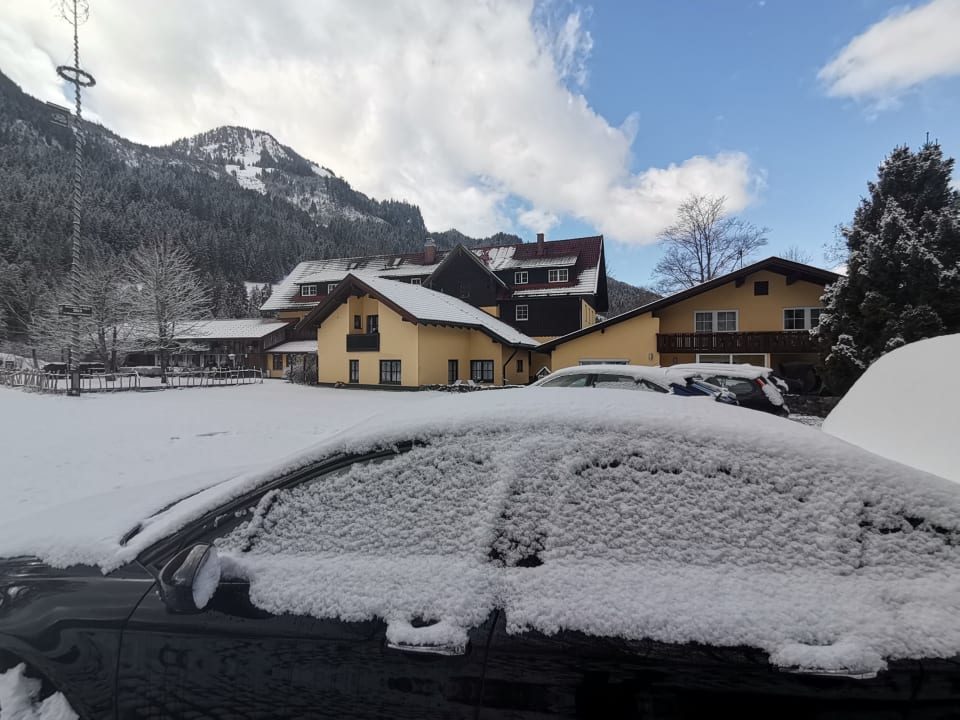 Vom Parkplatz aus. Vermutlich Sicht auf den Biergarten (im Sommer).
