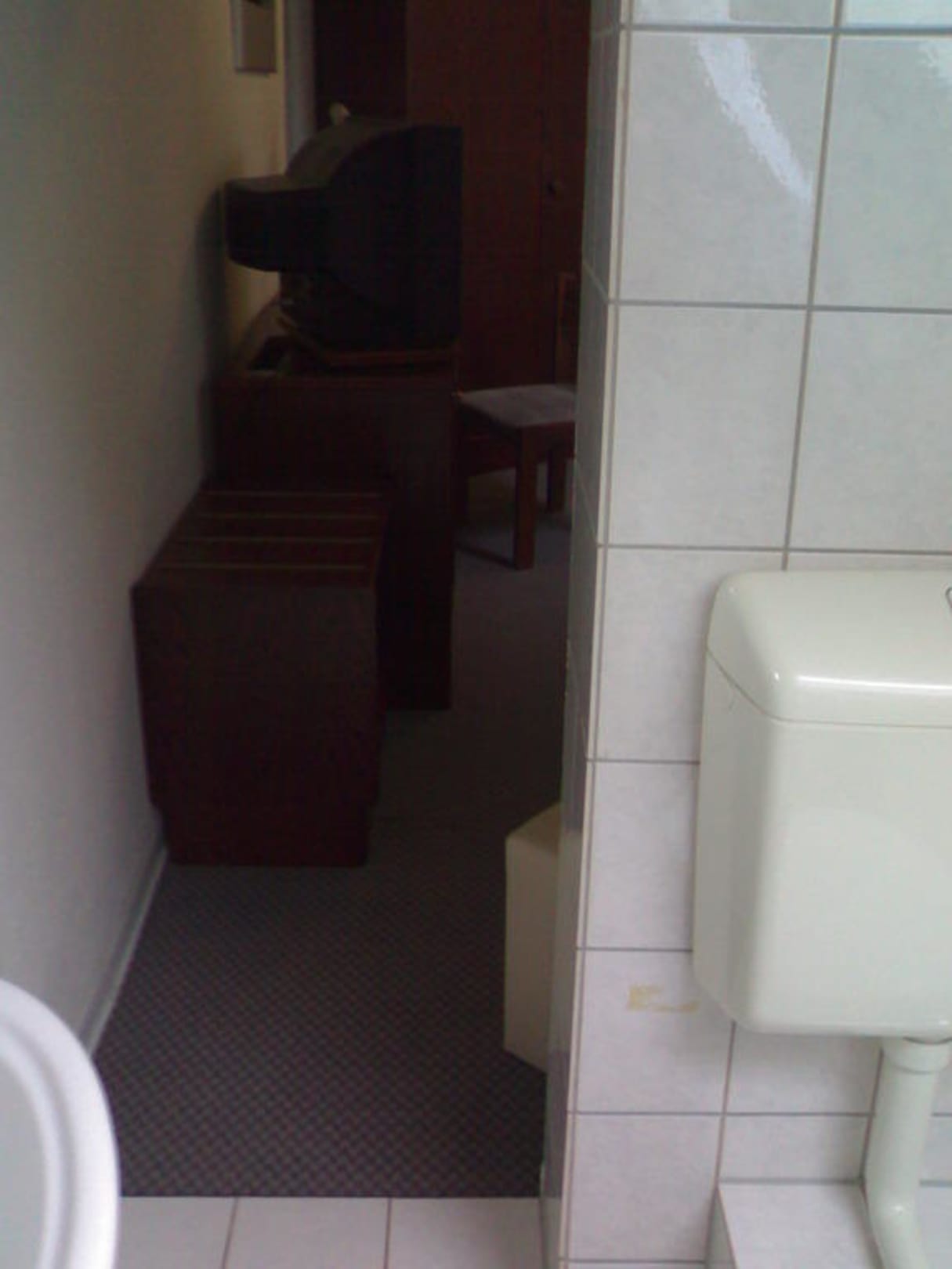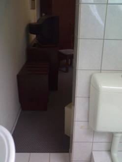 Blick vom Bad ins Zimmer - keine Abtrennung!