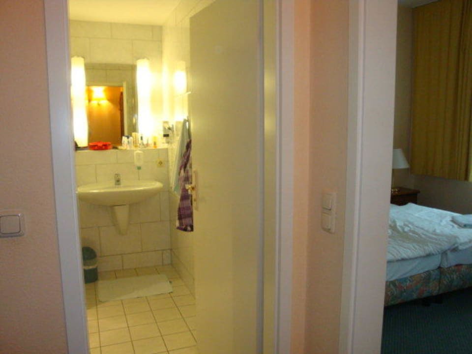 Blick ins Bad auf den Waschtisch