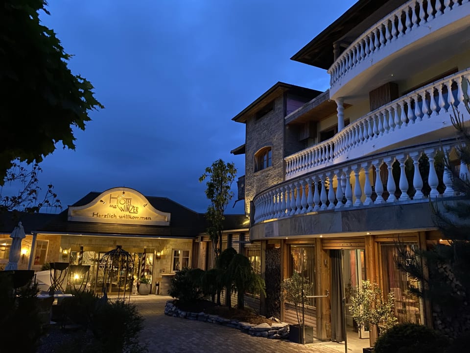Eingang Hotel Winzer am Abend.