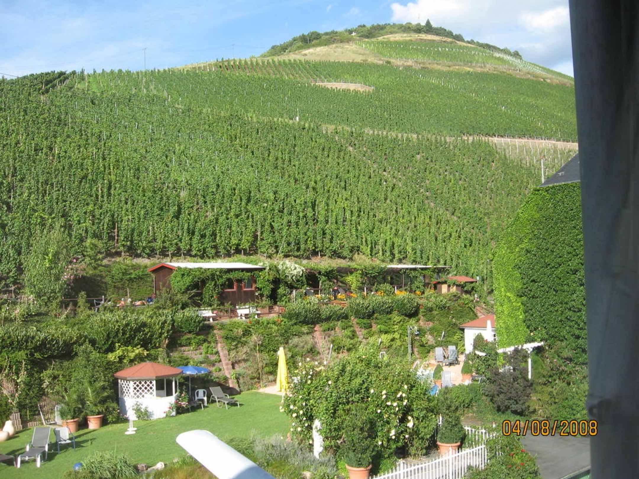Ausblick von der Gartenanlage zu den angrenzenden Weinbergen