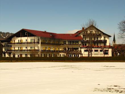 Hotel schön sonnig von Skiwiese aus gesehen