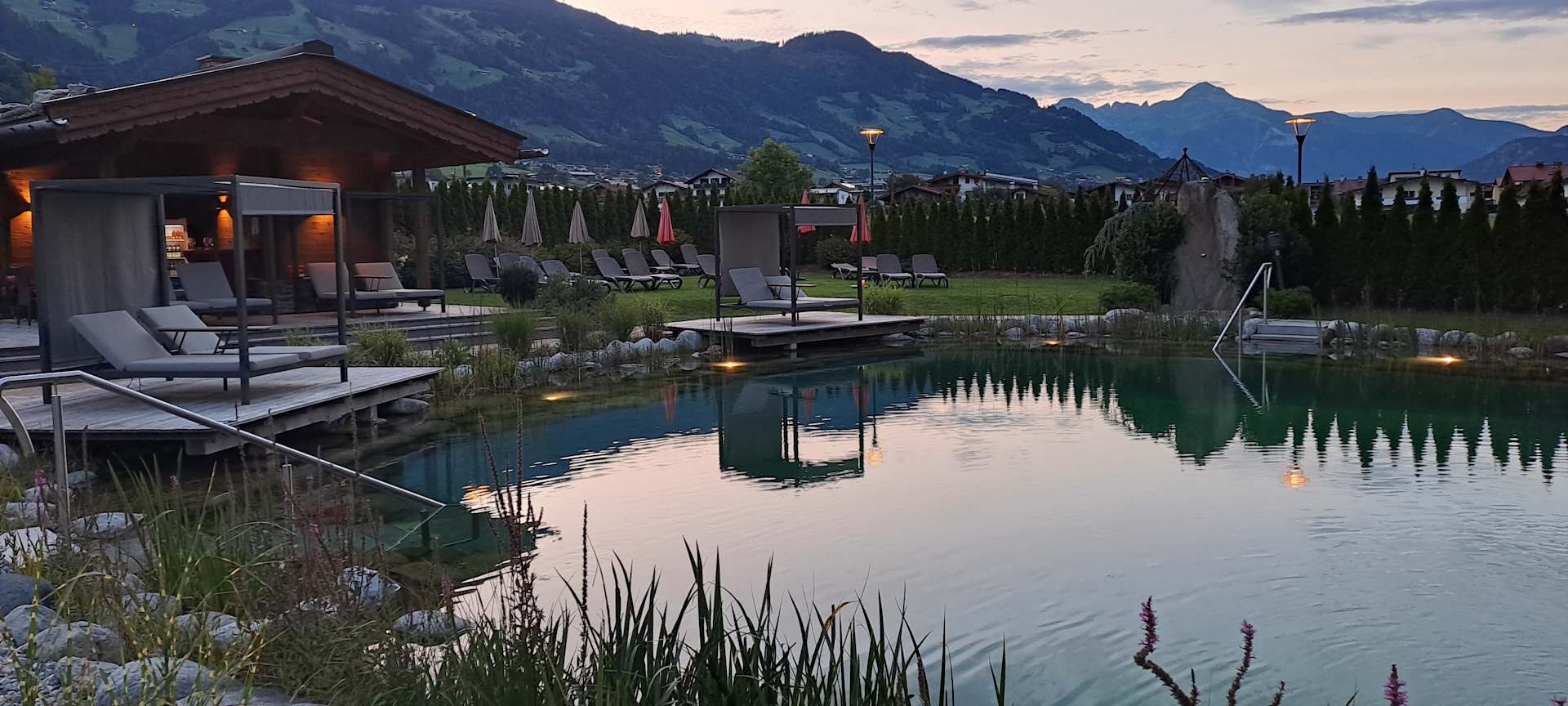 Schwimmteich am Abend