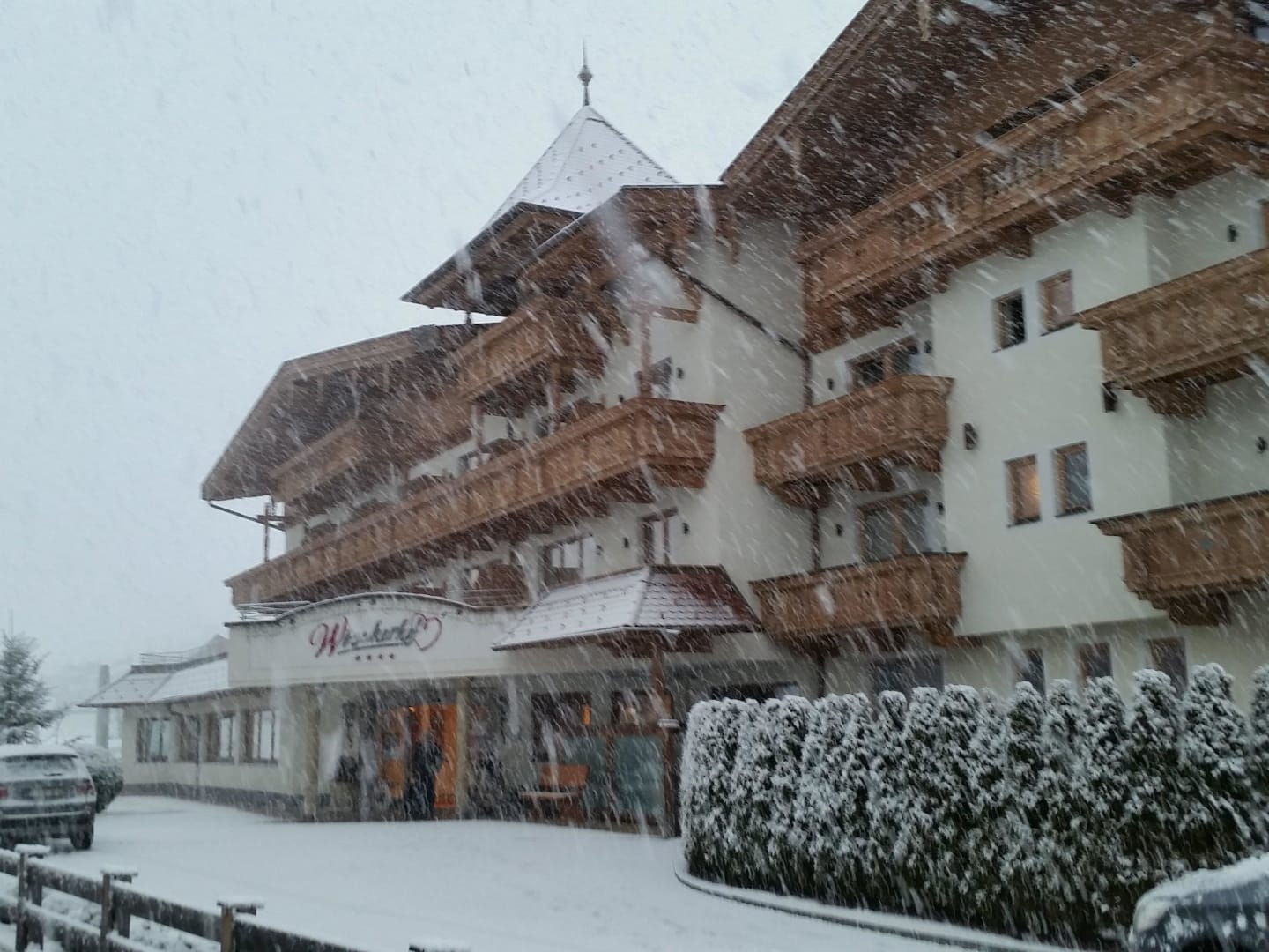 Hoteleingang im Schnee