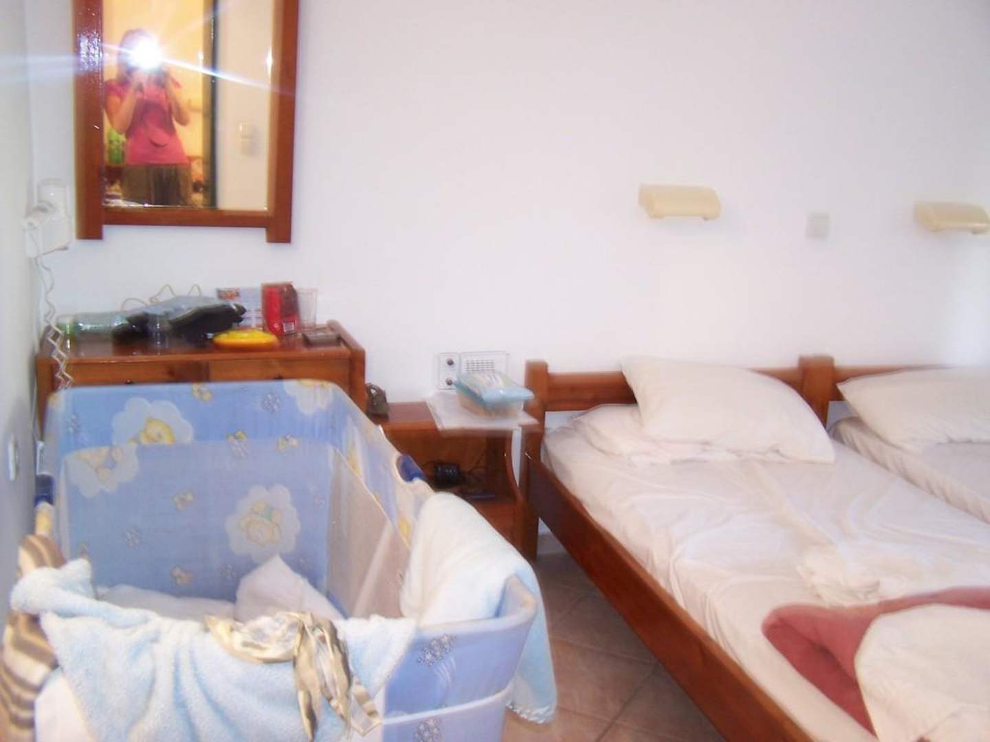 Jeden z pokoi mający dwa łózka , szafeczki, komodę, wyjście na balkon. Drugi poko tez miał dwa łóżka (tzn jedno połączone z dwóch), szafę lodówkę. Pokoje czyste codzinnie sprzątane. Reczniki wymieniane regularnie.