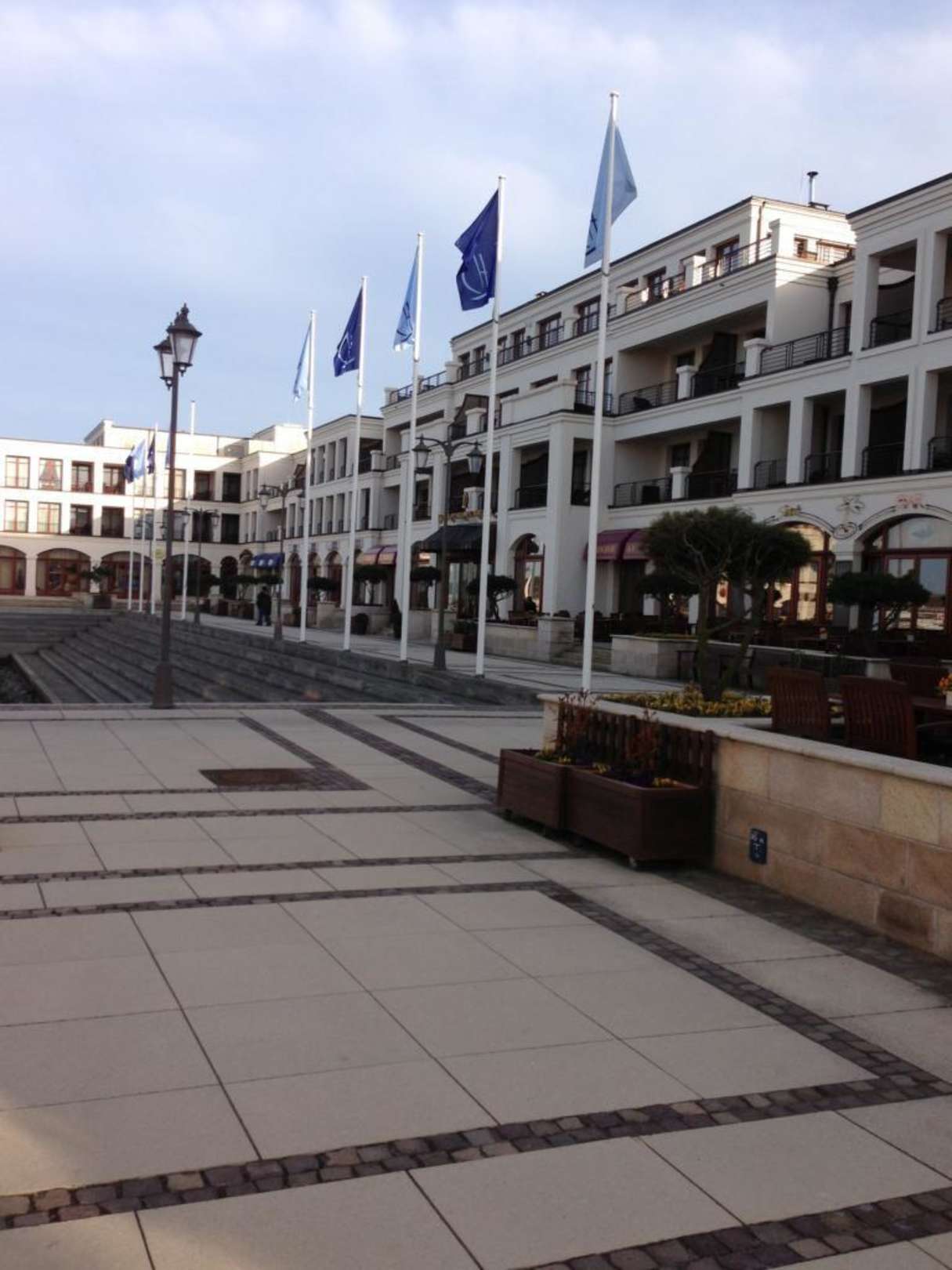 Blick vom Yachthafen aufs Hotel