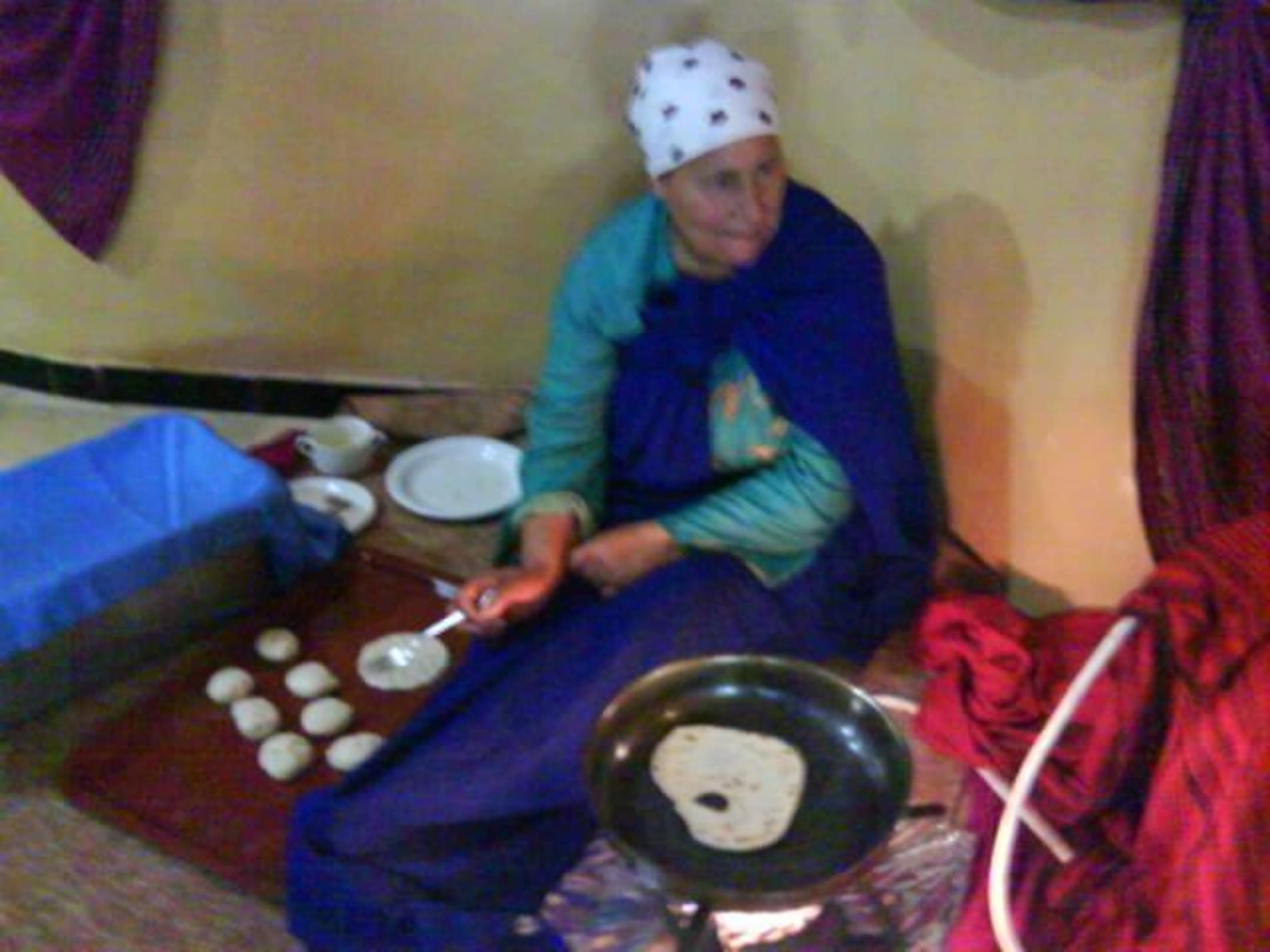 Frau die Fladenbrot vor ihnen backt