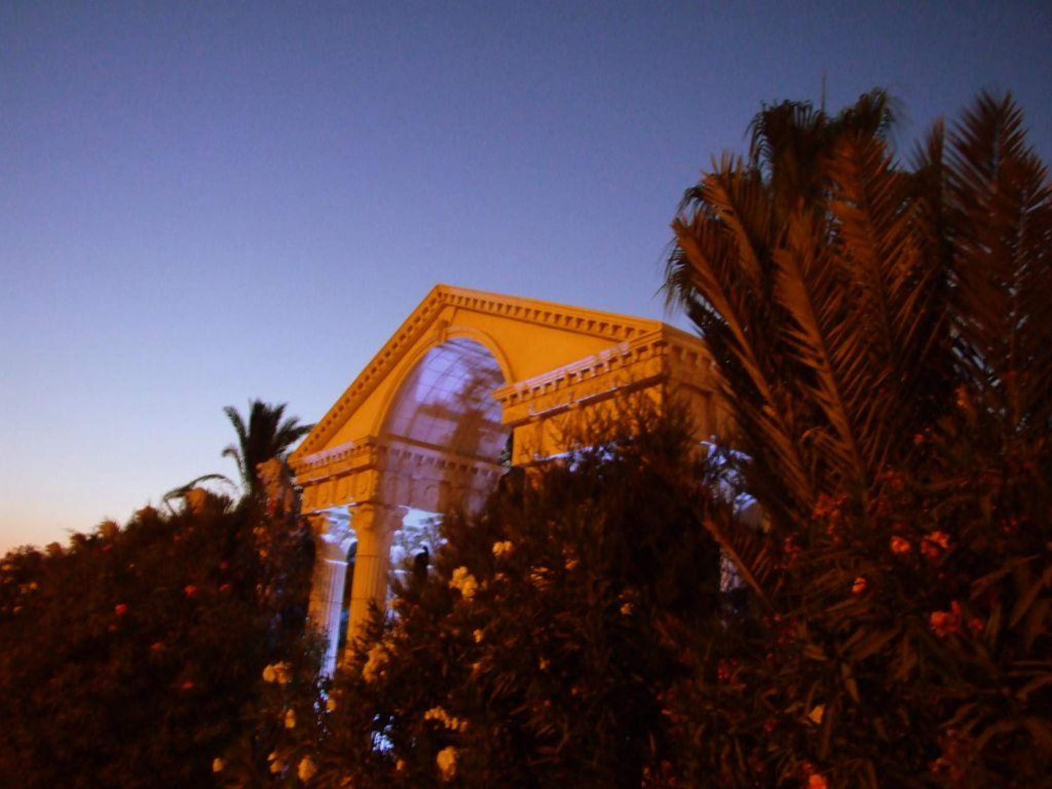 Mit Hilfe der üppigen Vegetation wurde das Hotelgelände "hermetisch" abgeriegelt. Vor dem Tor sieht man öfter Außenstehende, die sich vor dem Gitter fotografieren lassen.