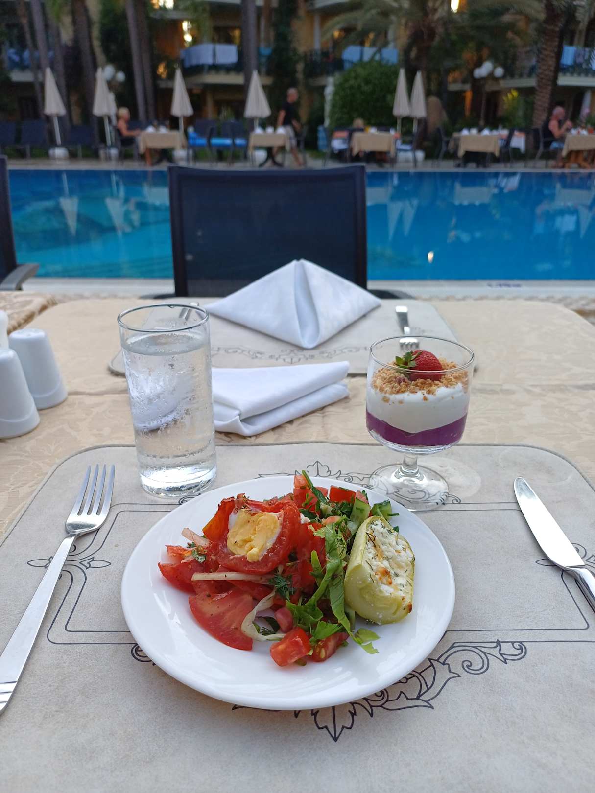 Abendessen am Pool