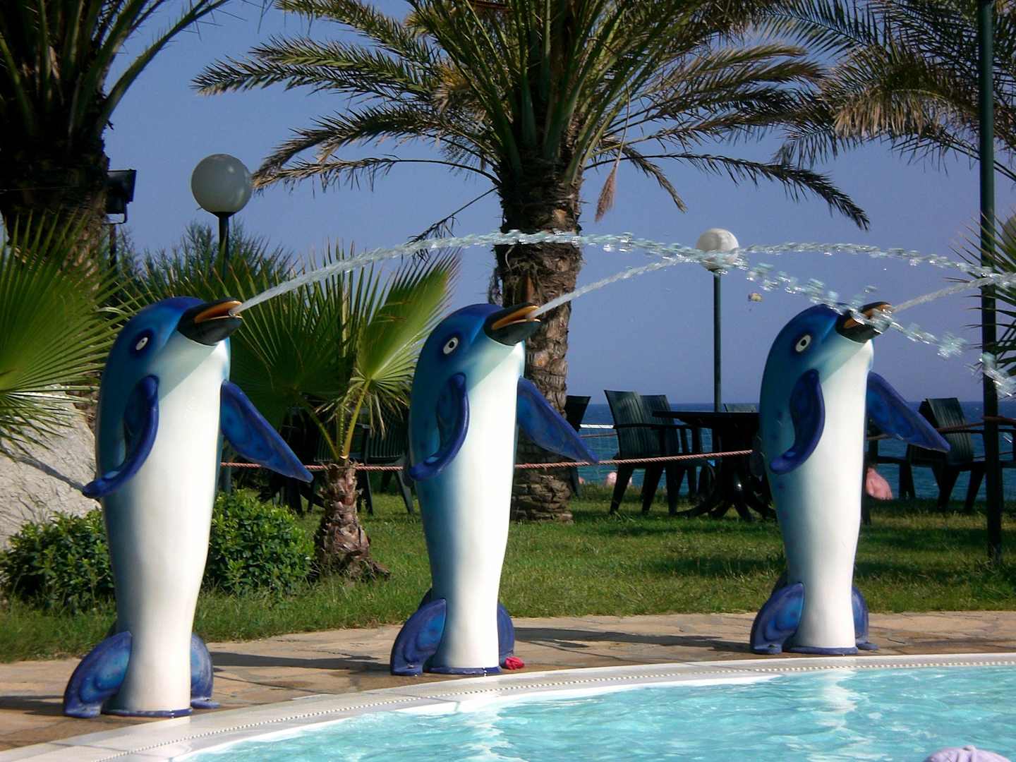 Wasserspuckende Delphine am Kinderpool