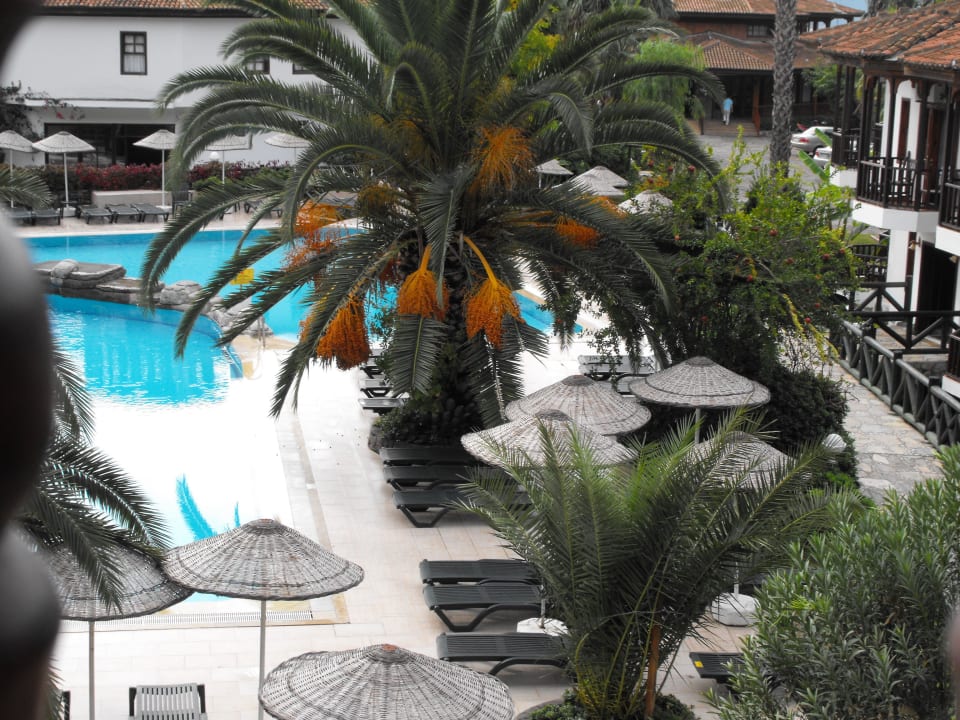 Dattelpalme und Granatapfelbaum am Pool