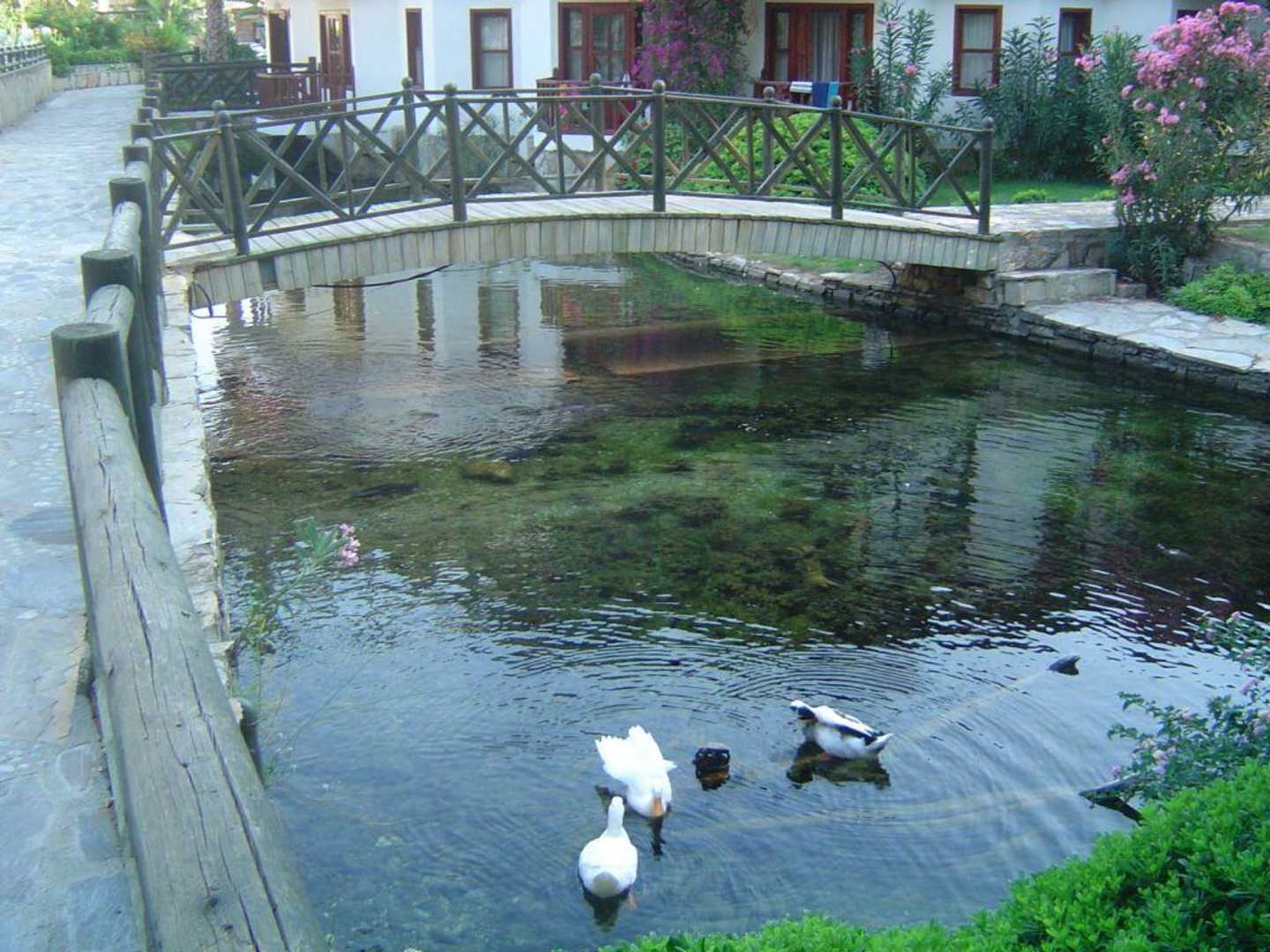 TeichTeich mit Enten, Schildkröten und Karpfen in der Hotelanlage, gespeist mit frischem Wasser eines Bergbaches