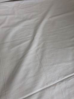 Fleckiges Laken und viele kleine Haare.