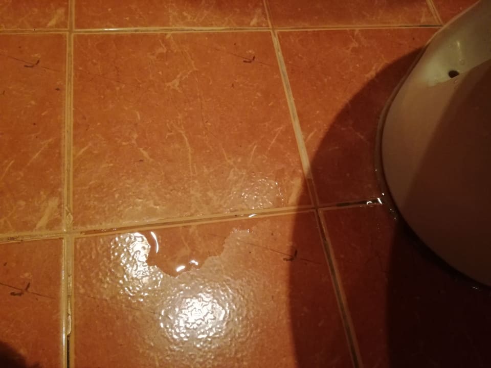 Die Toilette im Badezimmer. Dort ist die ganze Zeit das Wasser gelaufen. Außerdem (siehe Bild) stand deswegen die ganze Zeit Wasser im Bad. Es war deshalb ständig rutschig.