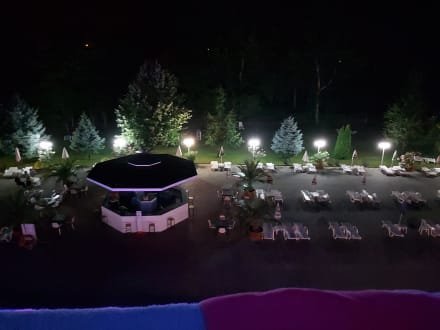 Pool und Poolbar am Abend.
