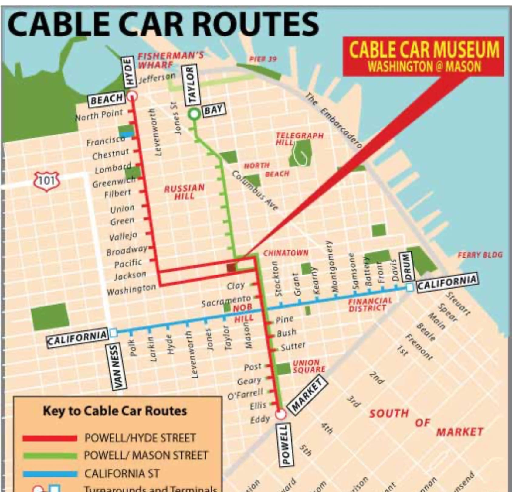 Die „grüne“ Cable Car Line endet in der Tylor Street unweit vom Hotel