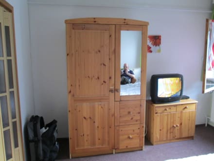 Wohn raum mit kleiderschrank und tv