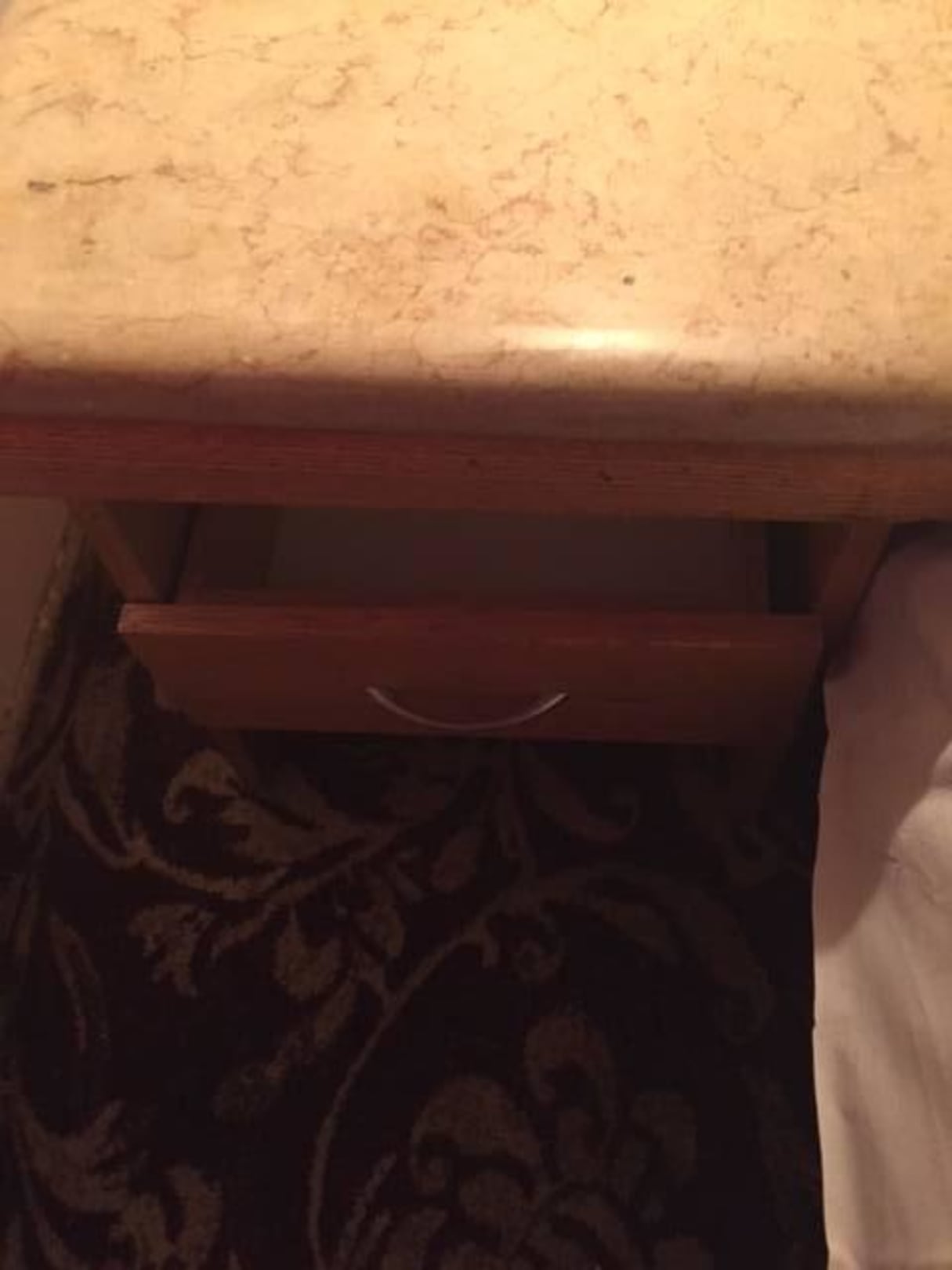 Night table with missing drawer